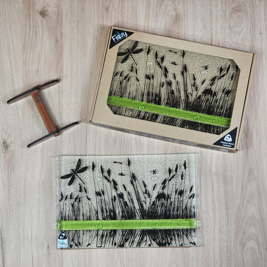 NZ Made Glass Platter/Plate - Reflections Dragonfly - Lime w/stand