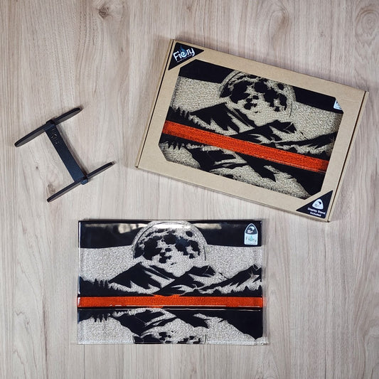 NZ Made Glass Platter/Plate - Native Snapper/Kina - Blk/Wht/Orange w/stand