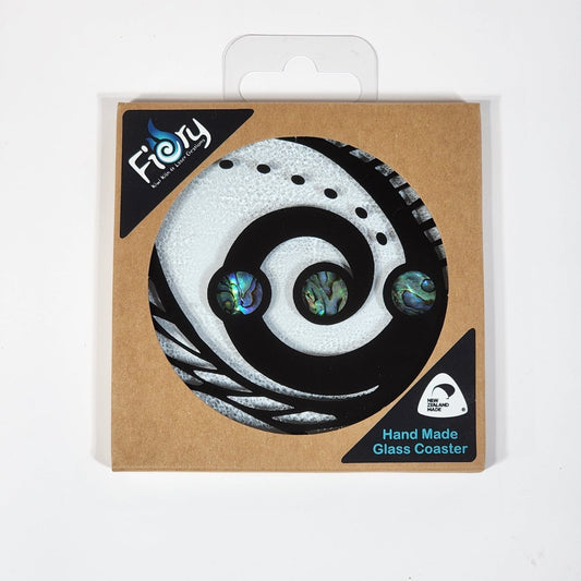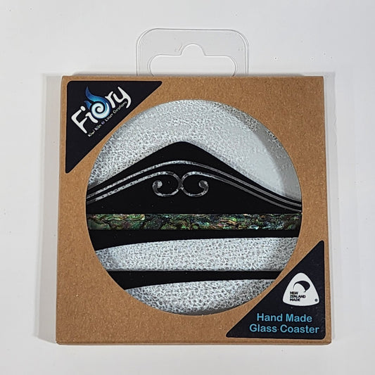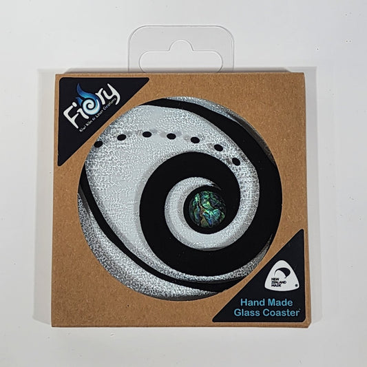 NZ Made Glass Paua Coaster Koru Kete - Single in display box