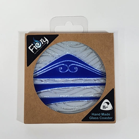 NZ Made Glass Coaster Te Maunga - Blue/Wht - Single in display box