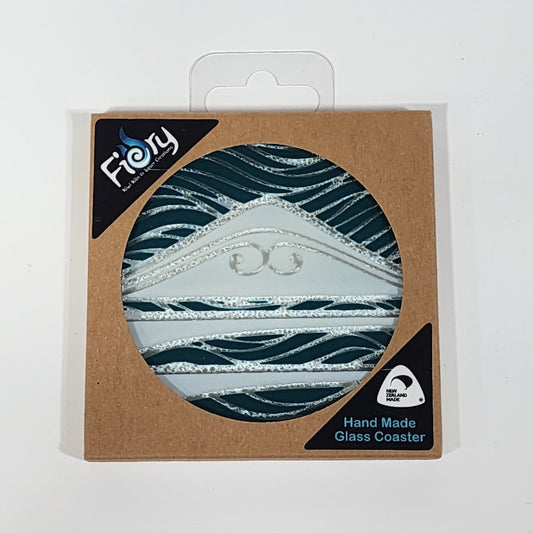 NZ Made Glass Coaster Te Maunga - Teal/Pearl - Single in display box